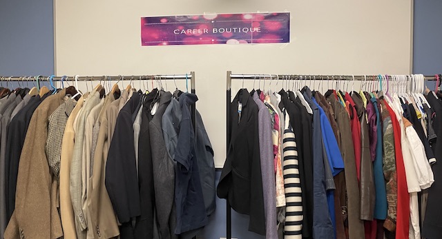 Career Services houses a backroom full of gently used professional wear from suits to handbags, items that students need for job interviews. The Career Boutique is a free service offered through the Career Services and opened right before the pandemic to help students in need.